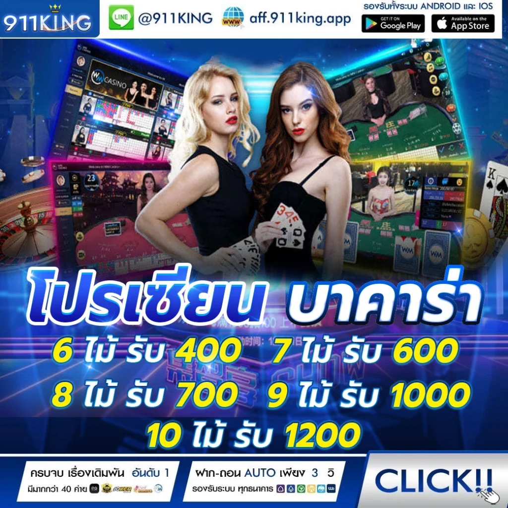 911 KING คือเว็บไซต์เดิมพันออนไลน์ที่ตอบโจทย์นักเสี่ยงโชคยุคใหม่ครบถ้วน ไม่ว่าจะเป็นสายคาสิโนสด สล็อตแตกง่าย หรือเดิมพันกีฬา ก็สามารถเข้าใช้งานได้จากบัญชีเดียว สมัครง่าย รองรับทั้งมือถือและคอมพิวเตอร์ ด้วยระบบออโต้เต็มรูปแบบ ปลอดภัยและมั่นคงในระดับสากล เว็บตรงไม่ผ่านเอเย่นต์ จึงทำให้สมาชิกมั่นใจในทุกการเดิมพัน
